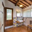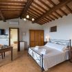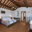 La nostra camera tripla di 50 m2 con giardino privato, presenta al suo interno travi a vista a soffitto e un pavimento in cotto.